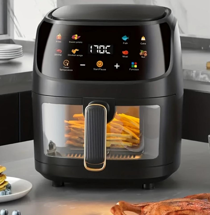 Friteuză cu Aer Cald 10L – Air Fryer cu LCD Touch, 3500W, Fereastră Previzualizare