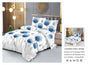 Transformă-ți dormitorul într-un spațiu de calm și eleganță cu această lenjerie de pat cu imprimeu floral albastru și accente subtile de fluturi. Modelul 3D oferă un contrast plăcut între florile globulare albastre și fundalul alb marmorat, aducând un aer proaspăt și modern în orice locuință.
