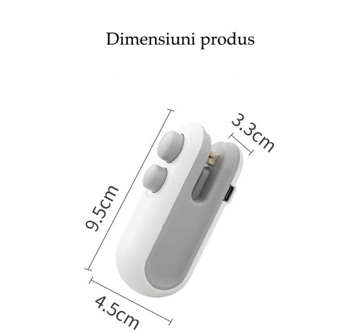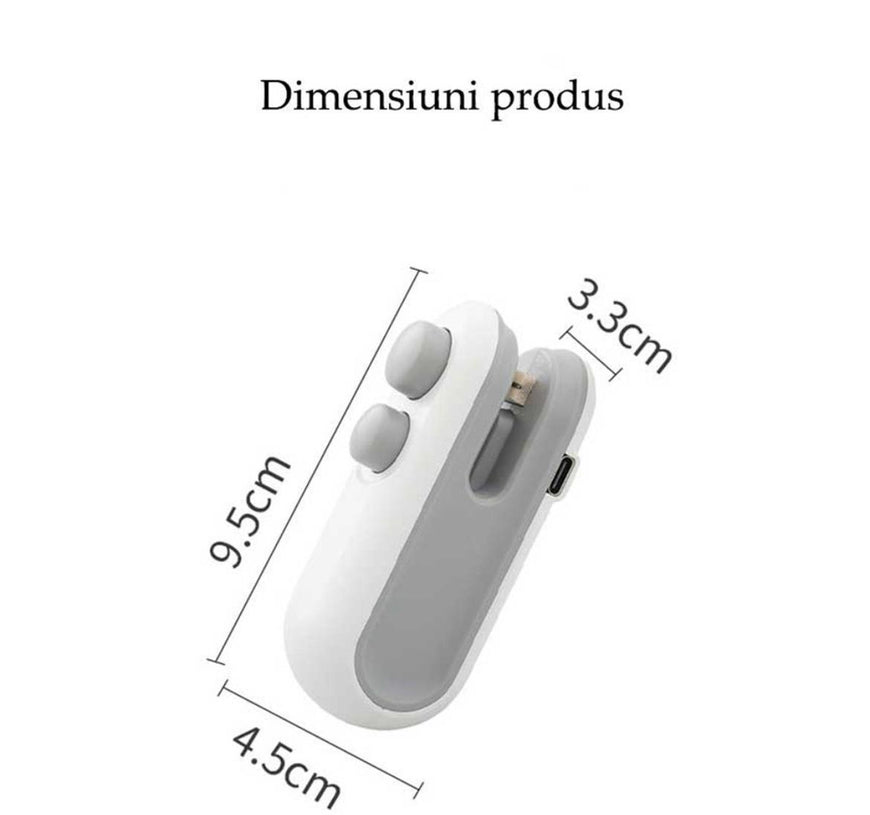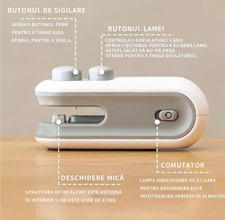 Acest aparat de sigilat este perfect pentru orice gospodărie! Păstrează mâncarea proaspătă, evită risipa și spune adio clemelor de plastic sau pungilor desfăcute. Compact, eficient și ușor de folosit, e alegerea ideală pentru oricine!