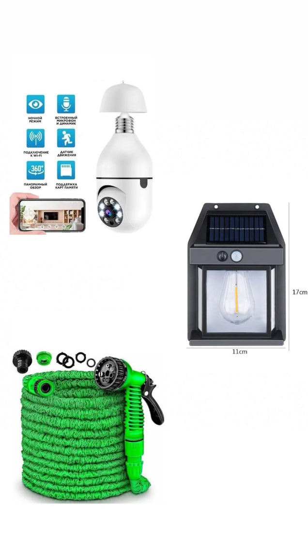 Pachet 3 produse, Camera wifi 1080 mpx,Furtun De Gradina Extensibil 30m,Proiector Solar Felinar