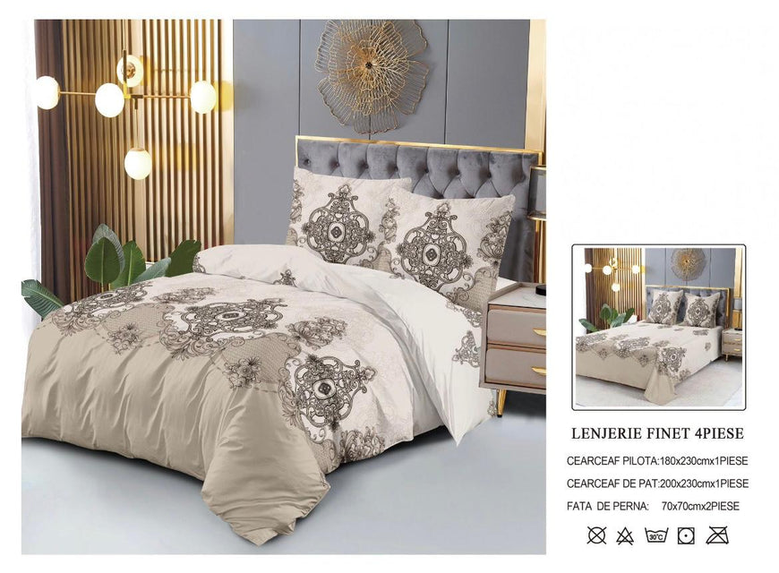 Set Lenjerie de Pat Finet Bumbac 4 Piese – Model Clasic Elegant