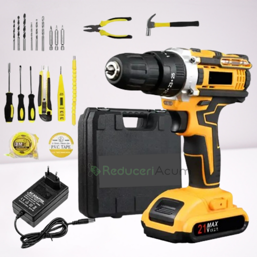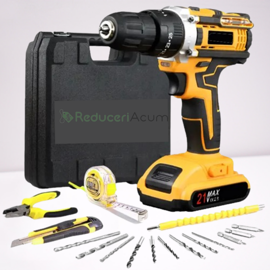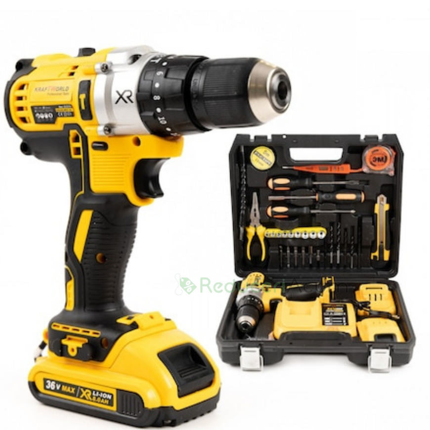Trusa bormasina LEIHMANN, 2 acumulatori, 36V, 5Ah, incarcator si 30 accesorii, galben + Trusa 40 Piese Cadou
