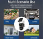 Construită pentru exterior, camera este rezistentă la intemperii (IP66) și face față ploii, vântului sau prafului. Instalarea este rapidă și fără cabluri, fiind potrivită pentru case, ferme, cabane, depozite sau parcări.