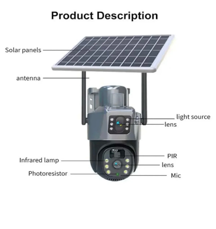Echipată cu panou solar de înaltă eficiență, camera funcționează autonom, folosind energia solară pentru a menține bateria încărcată, eliminând cablurile și sursele externe.
