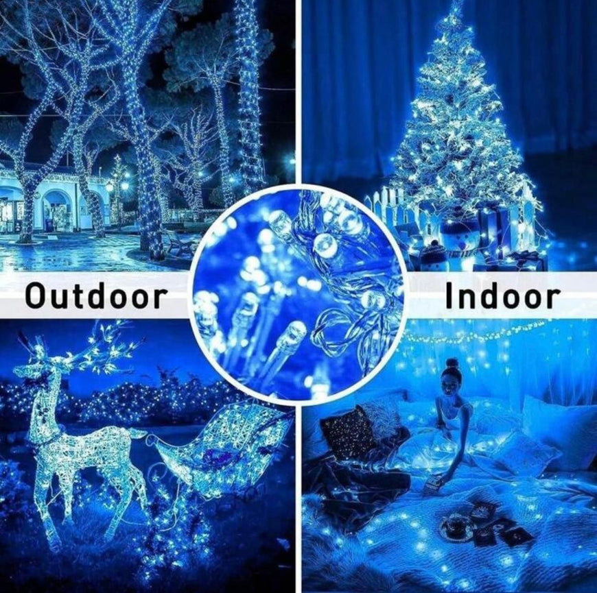 Alege Instalația de Crăciun cu becuri model diamant, 100 metri și 480 LED-uri albastre pentru un decor elegant, intens și de neuitat. Fie că vrei să luminezi bradul, terasa sau întreaga casă, această instalație aduce farmecul rece al iernii și eleganța luminii albastre în fiecare colț al casei tale.