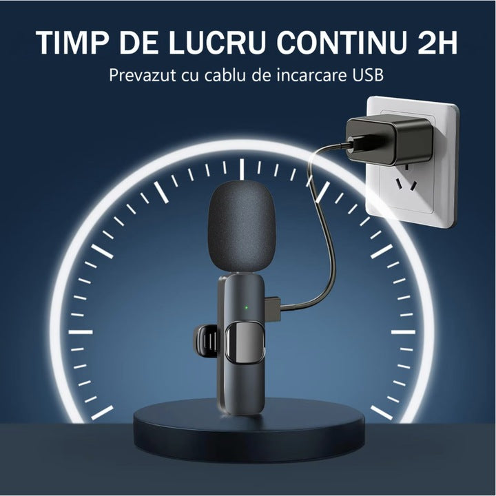 ✔ Pachet complet: Include 1 microfon lavalieră, 2 receptoare USB-C, 1 interfață, 1 cablu de încărcare și manual de utilizare.