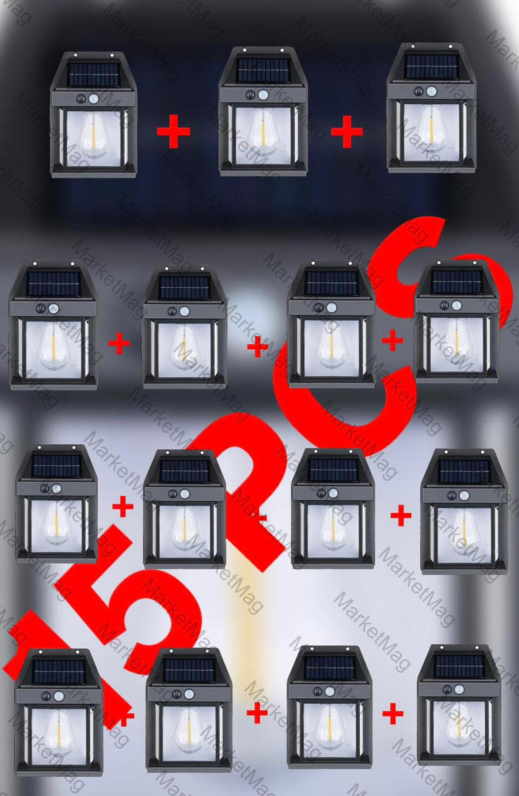 Set 15 Lămpi Solare LED cu Senzor Mișcare, 3 Moduri Iluminare, 30W, 600 Lumeni, IP65, Perete Exterior