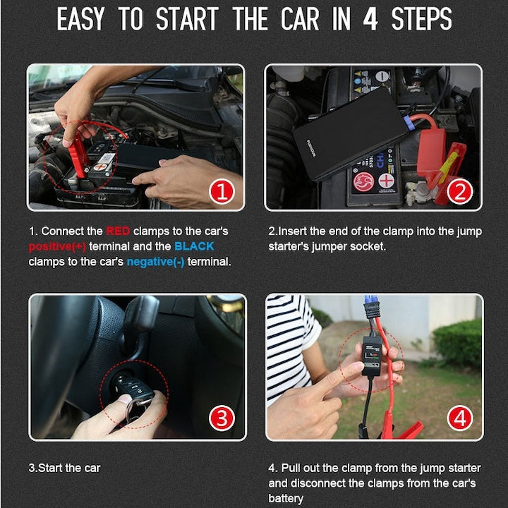 ✔ Pornire auto rapidă și sigură – curent de pornire 300A și curent de vârf 600A pentru 3 secunde, potrivit pentru baterii descărcate