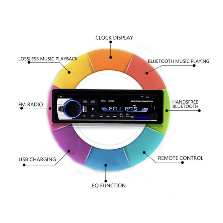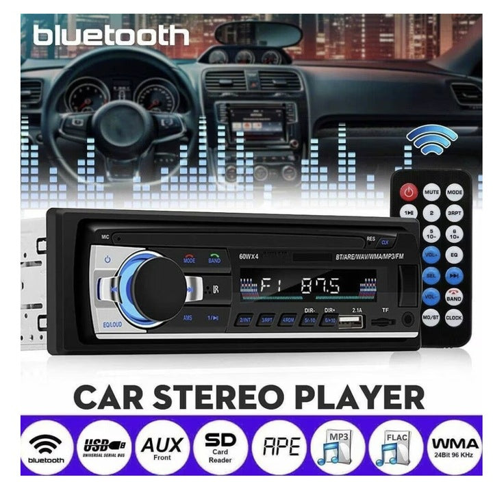 Player Auto 4 x 60W cu Bluetooth, Radio, MP3, AUX, MicroSD și Telecomandă – Compatibil Telefon