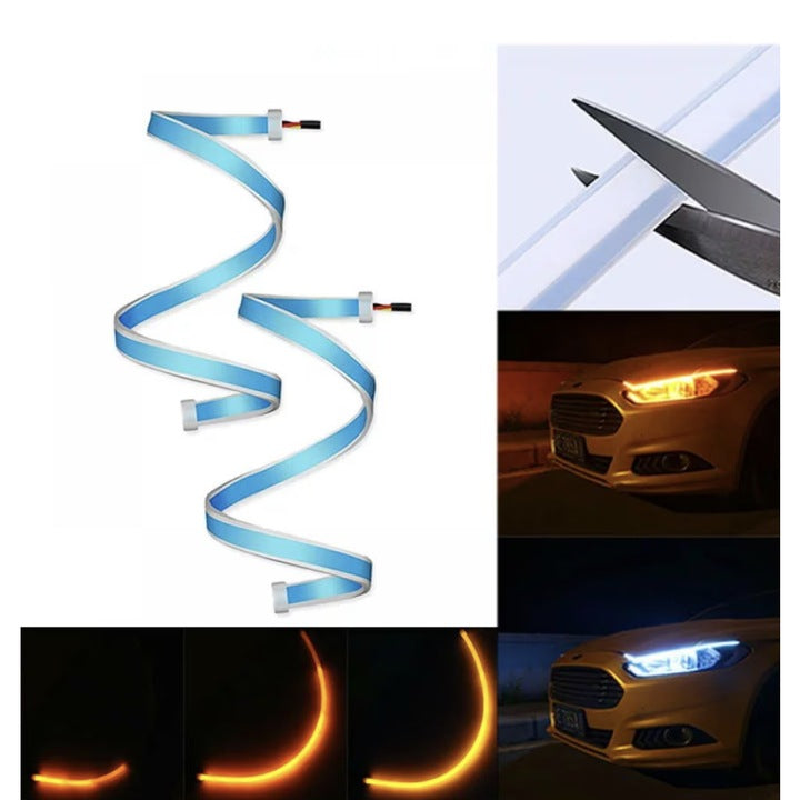 Set 2 Lumini DRL cu Semnalizare Dinamica Secvențială, Alb/Galben, 30 cm – LED Flexibile, IP65