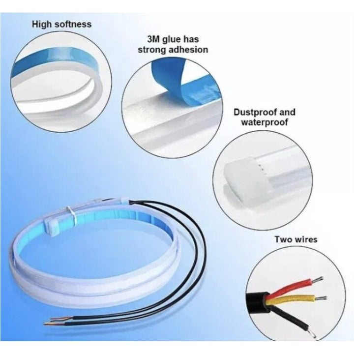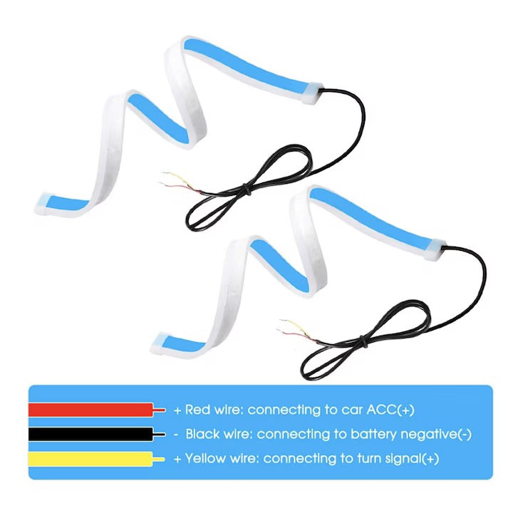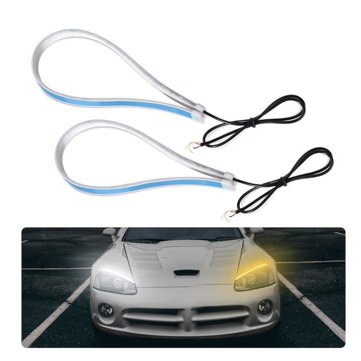 Set 2 Lumini DRL cu Semnalizare Dinamică Secvențială, Alb/Galben, 45 cm – LED Flexibile, IP65