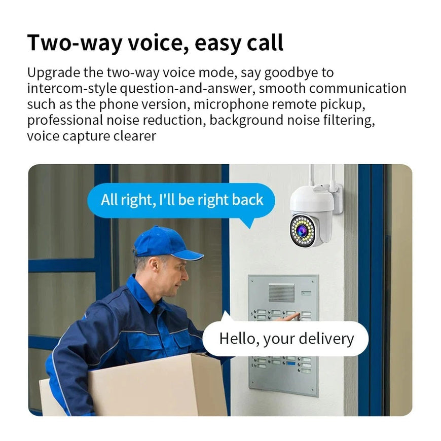Camera poate fi controlata din telefon, are microfon si speaker, deci puteti auzi si puteti vorbi prin intermediul camerei.