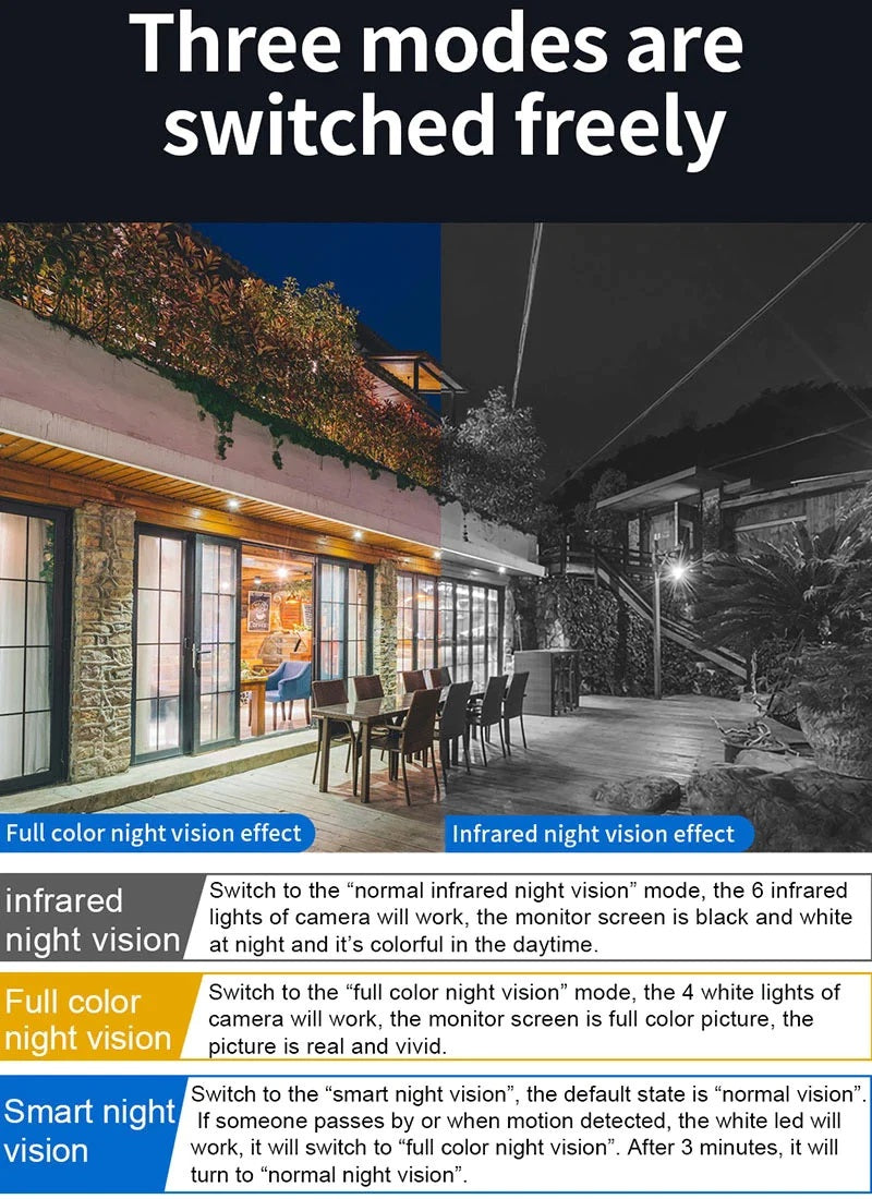 Camera are senzor miscare, face captura foto si trimite aceasta captura pe telefon, puteti programa functia de alarma la miscare, pentru a nu va deranja tot timpul.