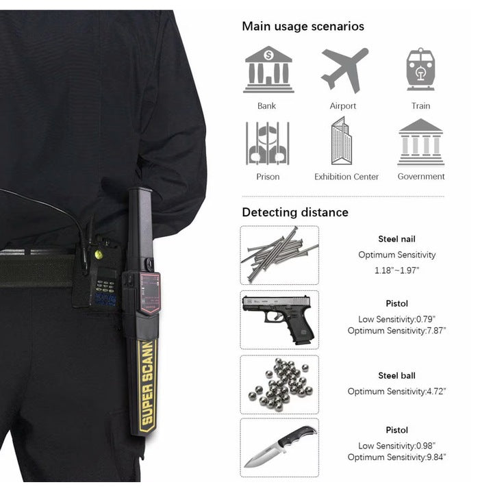 ✔ Detectează o gamă largă de obiecte metalice: arme, pistoale, cuțite, lame de ras, ace, foarfeci și alte obiecte metalice ascunse