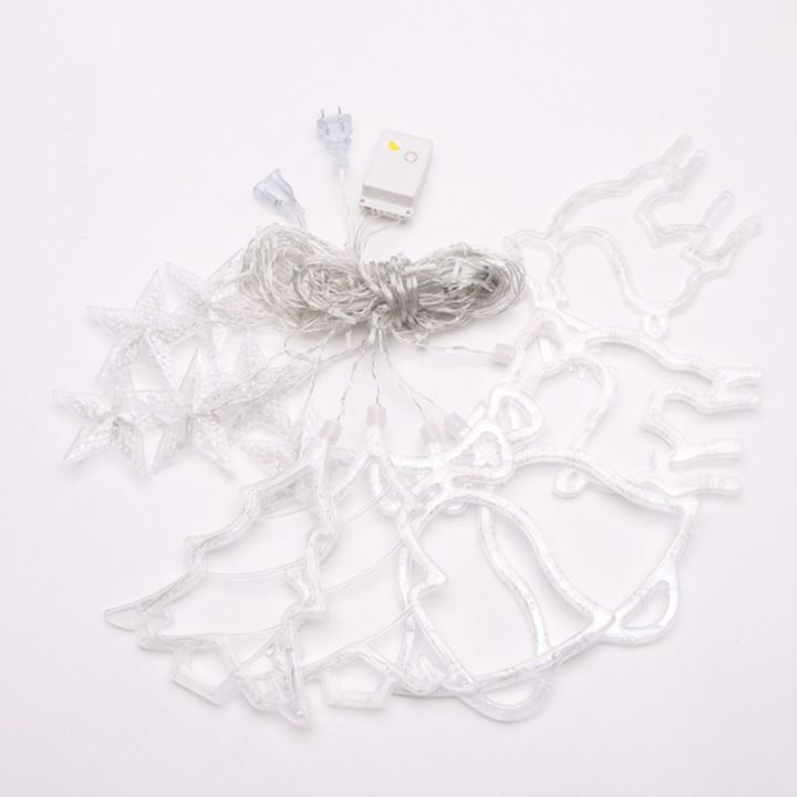 Instalație Perdea Crăciun Alb Rece cu Reni, Clopoței și Stele