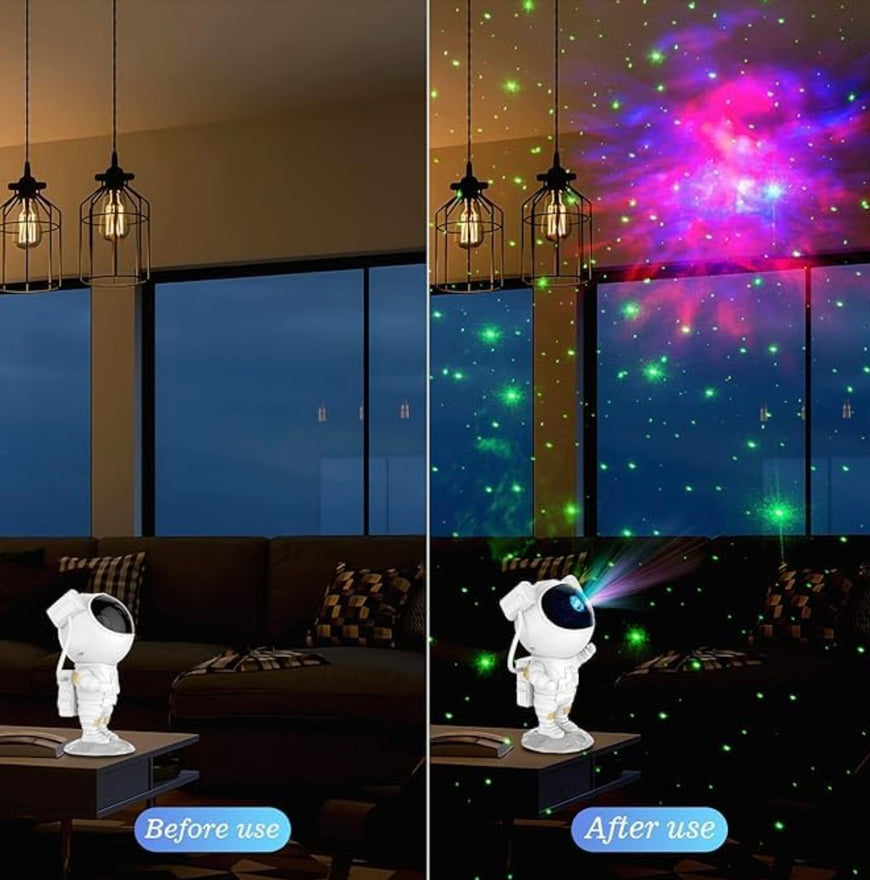Descoperă magia universului direct din camera ta cu proiectorul astronaut LED 🌌. Acest mic explorator transformă tavanul și pereții într-un spectacol de stele și galaxii, aducând relaxare și atmosferă unică pentru copii și adulți.